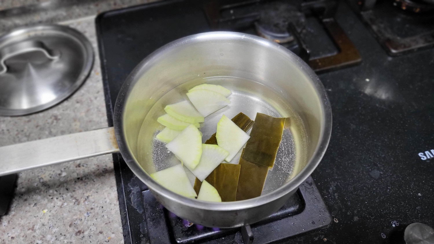 다시마는 찬물일 때 넣었다가 물이 끓으면 제거해야 끈적한 진액이 나오지 않는다.