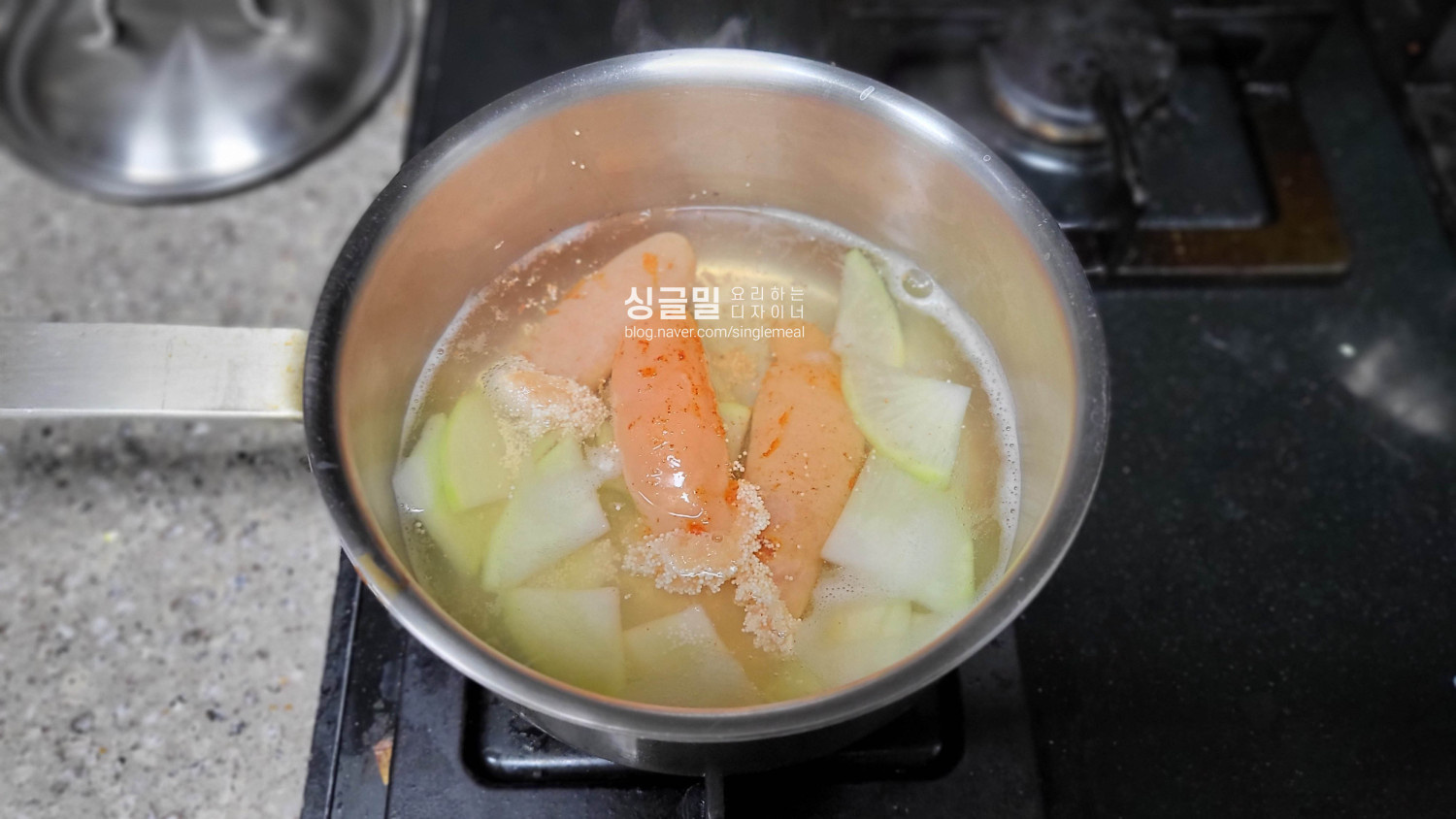 국물도 맹물을 붓는 것보다는 다시마 몇 조각과 무를 넣고 끓이면 훨씬 시원하다.