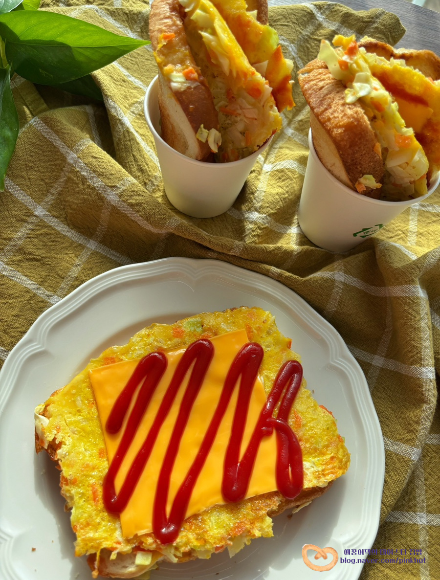 식빵 세 장을 각각 접어서 3개 분량으로 만들었더니 뚜아자매 간식용으로도 너무 좋더라고요. 아이들이 집어먹기에 편하고요, 칼로리 걱정 줄일 수 있답니다. 다이어트식으로 드실 분들은 저처럼 식빵 1장만 사용해서 만들어 보세요 :)