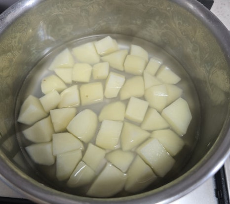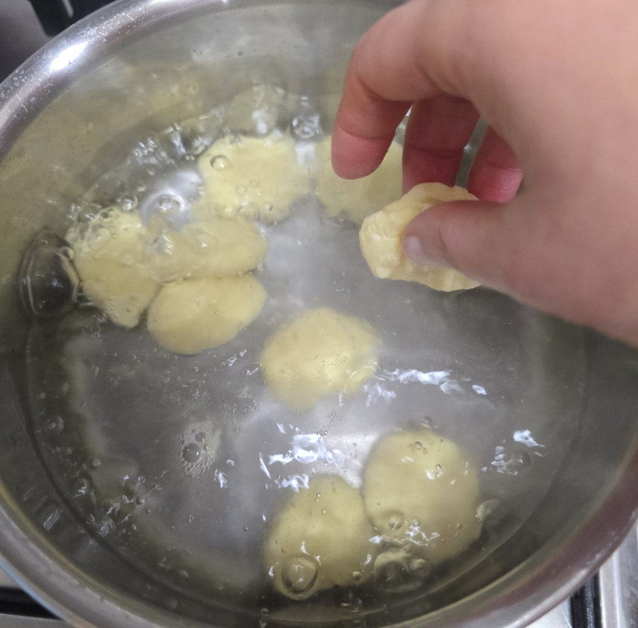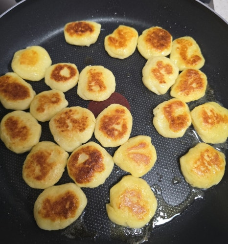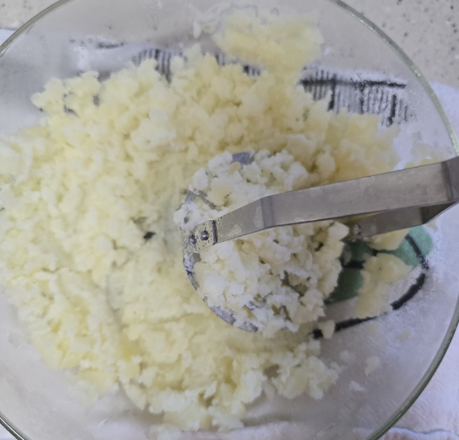 으깬 감자에 계란 노른자, 밀가루, 전분가루, 후추와 소금