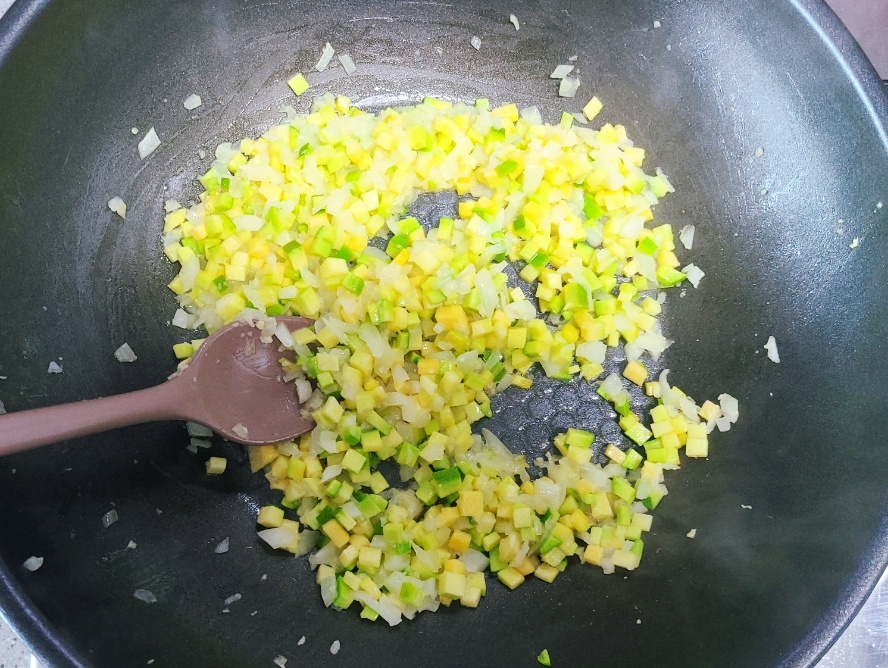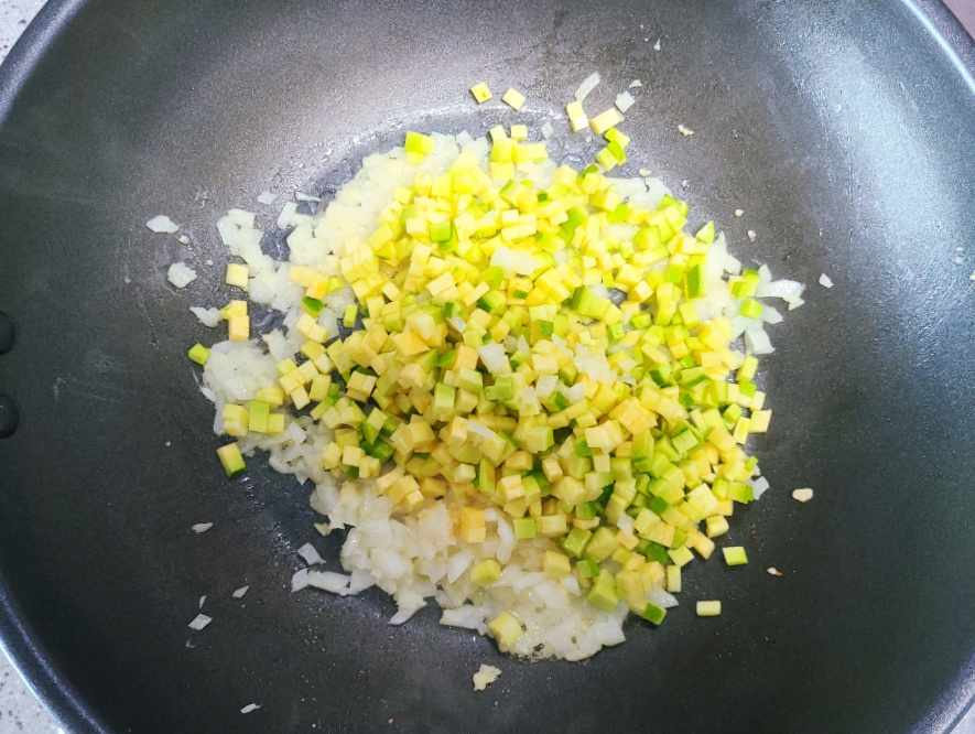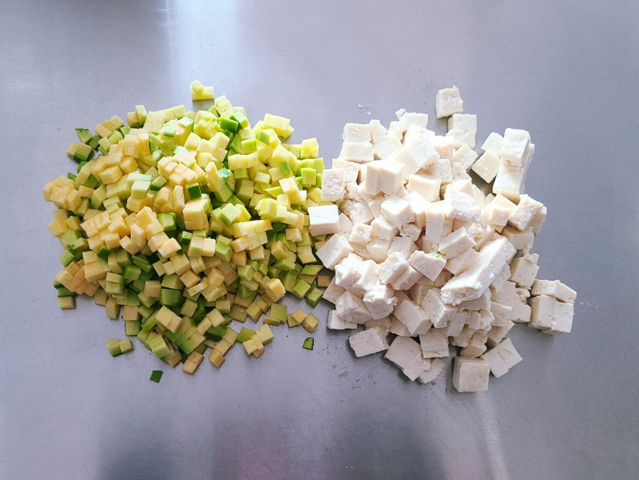 두부와 애호박은 5mm 정도 네모 모양으로 작게 썰어서 준비합니다.