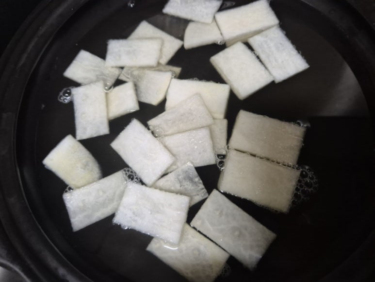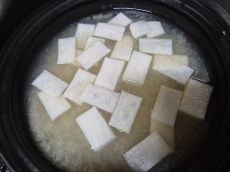 나박하게 썬 무를 넣고