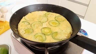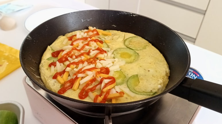 다양한 재료 중 단백한 샌드위치가 먹고 싶어서 애호박과 달걀을 넣어 만들어봤는데...