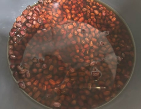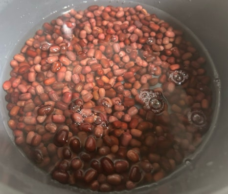 팥은 사포닌이라는 성분이 있어 떫고 배탈이 날수 있어서 미리 한번 데쳐내고 삶아서 사용해요.