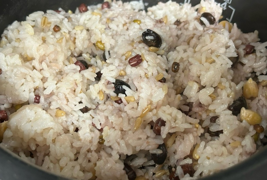 여러가지 잡곡과 액운을 막아준다는 붉은 팥을 듬뿍 넣어서 영양이 듬뿍이라 건강을 챙길 수 있는 맛있는 잡곡밥이예요.