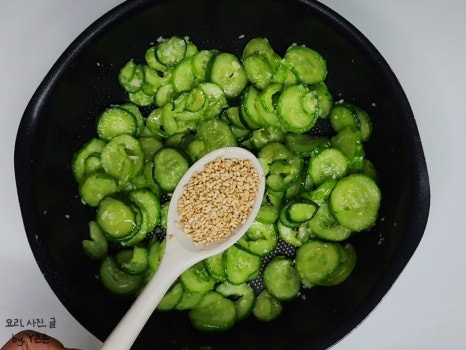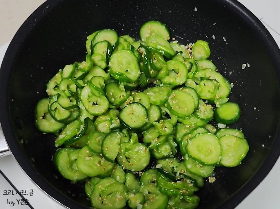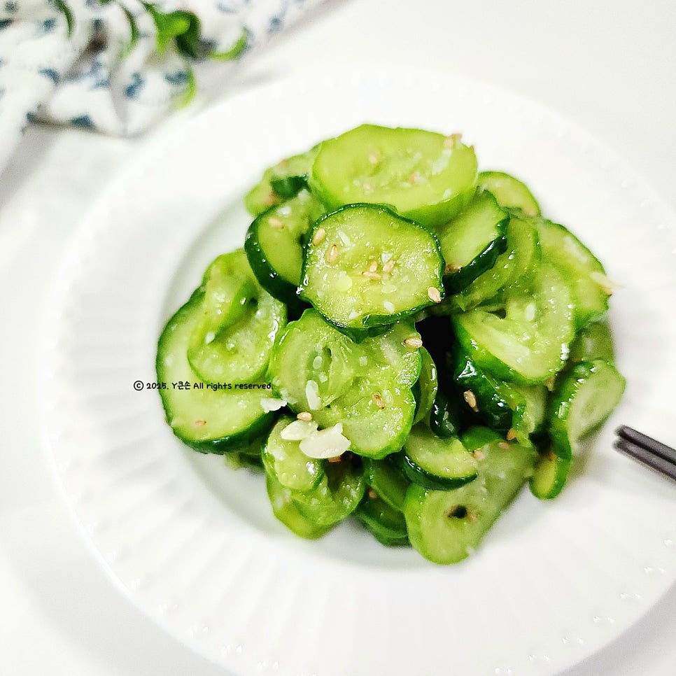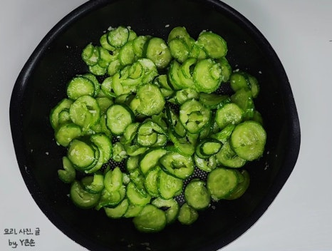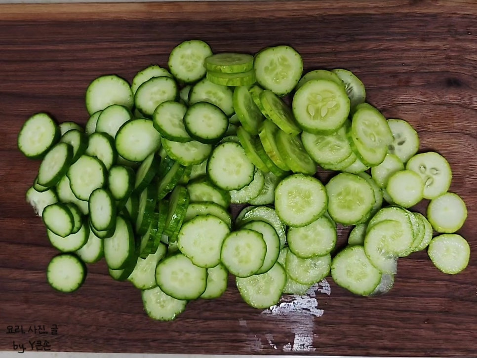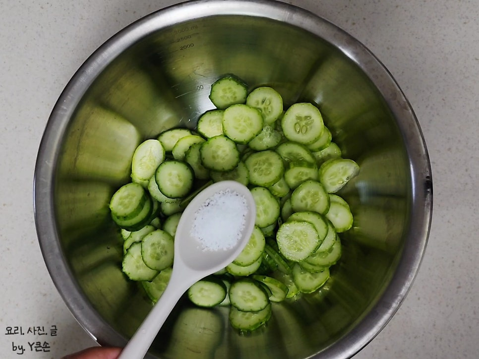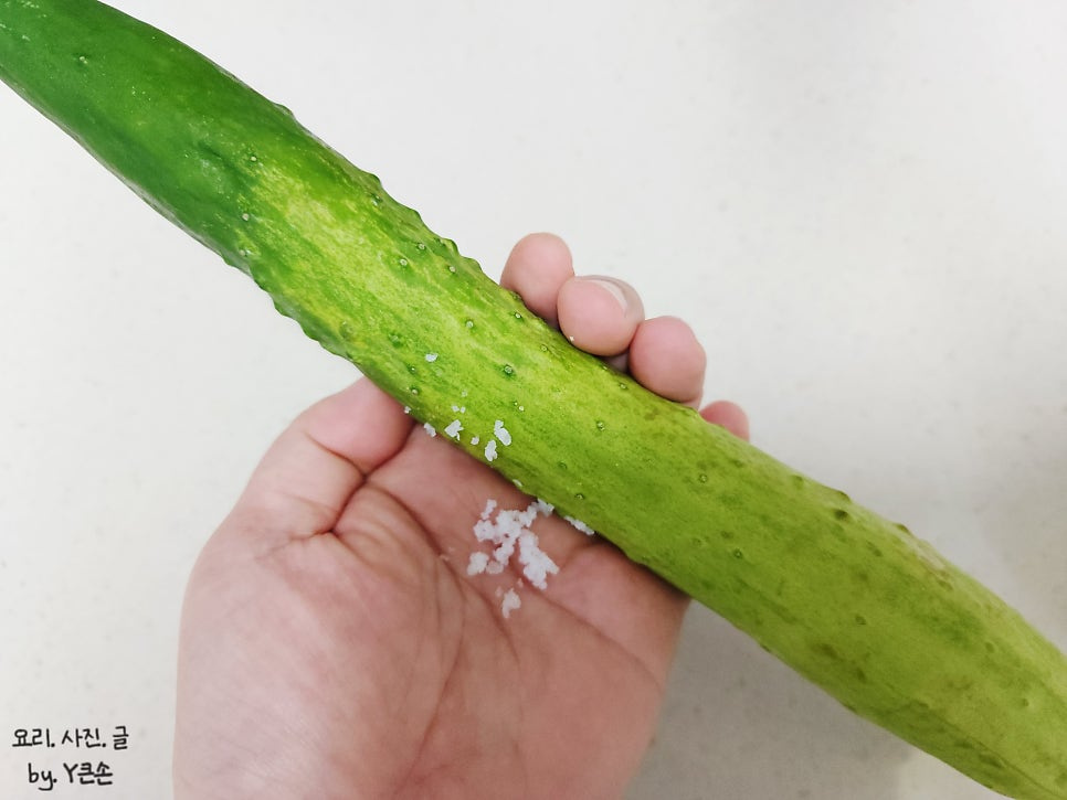 오이를 반 접으려 할 때 반 정도 접히는 정도/두께와 집안 온도에 따라 10분~20분 절이기