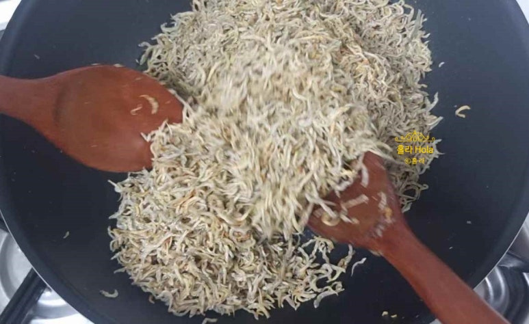 원래레시피에서는 멸치를 기름에 한 번 튀겨서 사용합니다.