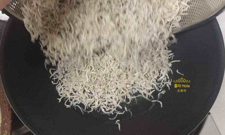 대신 충분한 양의 기름에 멸치가 최대한 바삭해질 때까지 볶은 후,