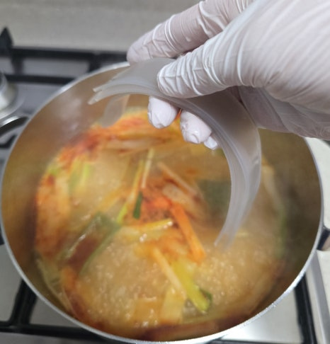 빨리 불리기 위해 뜨거운 물을 사용했어요.