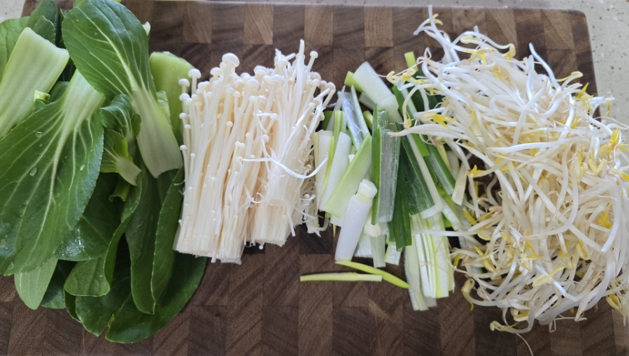저는요~ 청경채, 팽이버섯, 숙주, 비엔나소시지, 배추, 어묵을 준비했어요.