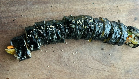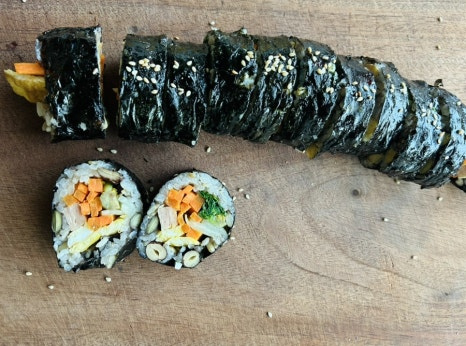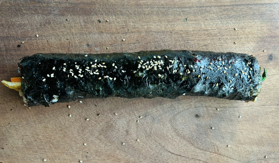 재래김이라 얇아서 2장씩 포개서 쌌는데 일반 김밥용김이라면 2장이면 되요.