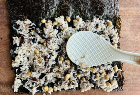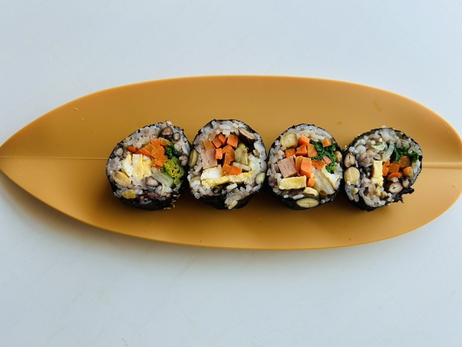 허비가 콩 많아서 더 좋다고 하길래 김밥에도 그냥 콩밥을 넣었더니 밥이 상대적으로 적게 들어가서 다이어트 효과도 있는 거 같아요.