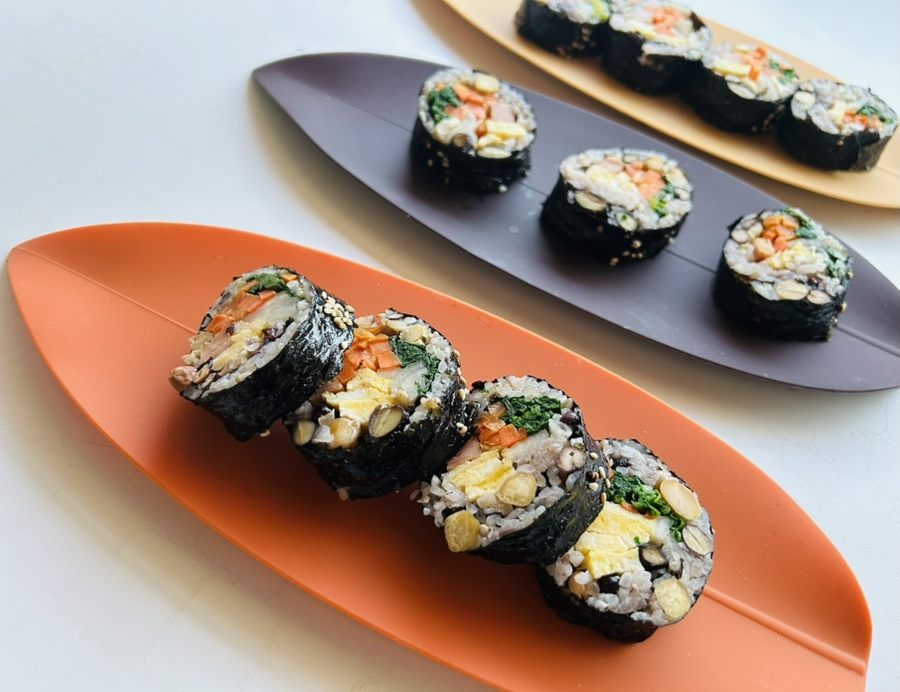 저는 콩밥을 그다지 좋아하는 편이 아닌데 김밥의 다양한 재료가 섞이니 콩맛이 많이 안나서 맛있었어요.