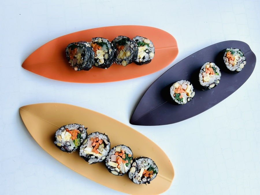 친구가 선물한 실리콘 나뭇잎 접시세트가 상차림을 멋지게 해주네요.