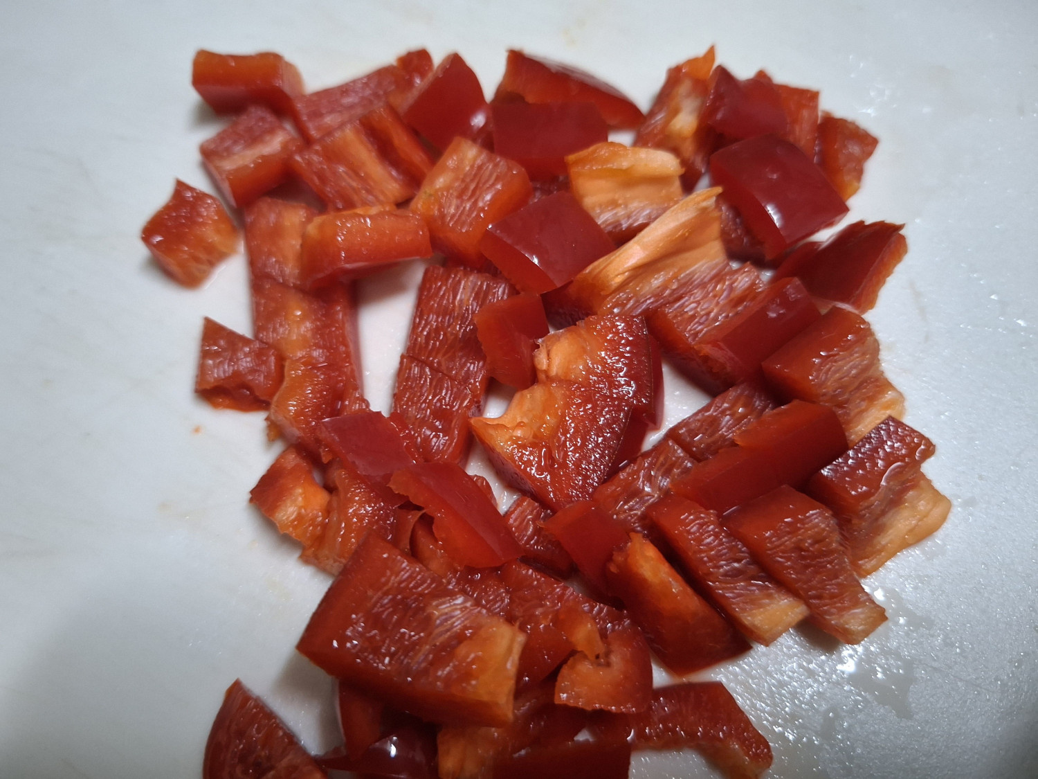 양파도 빨간 파프리카와 비슷하게 썰어주세요.