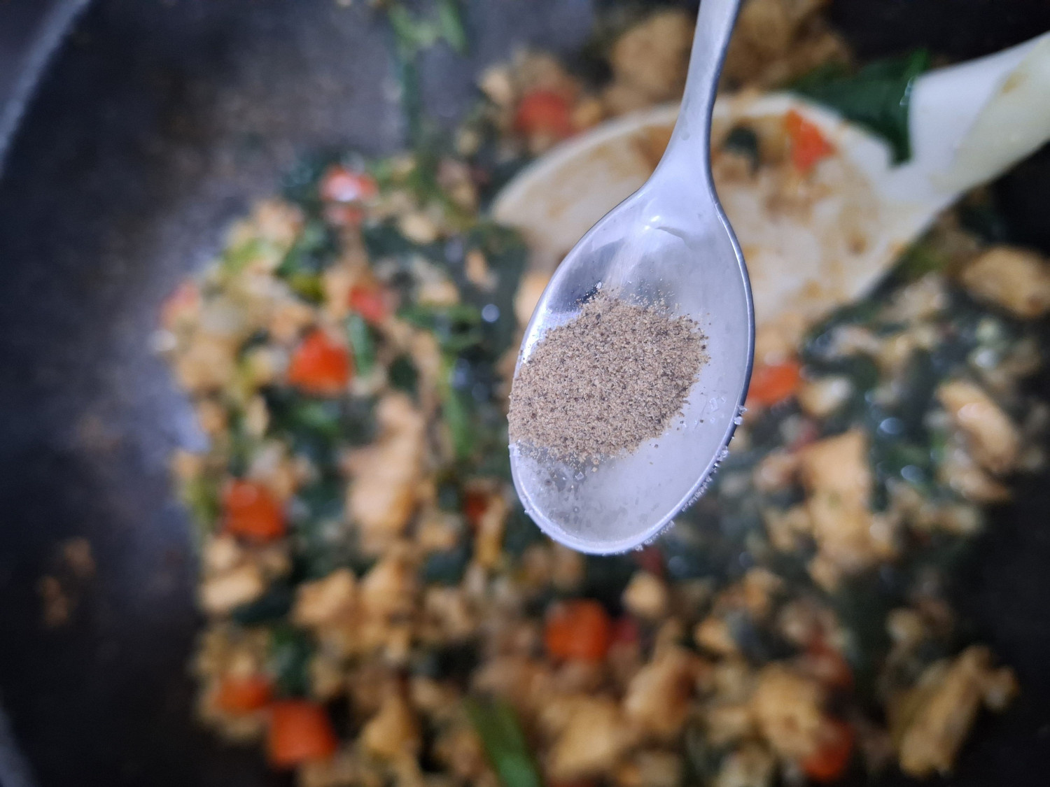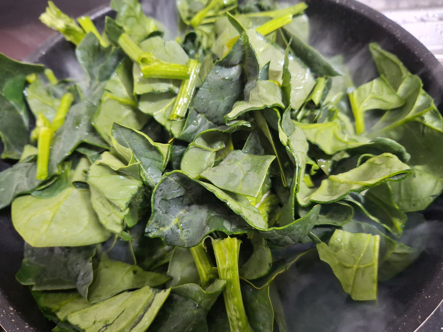 시금치는 정말 숨이 빨리 죽어요. 그래서 넣는 즉시 빠르게 조리합니다.