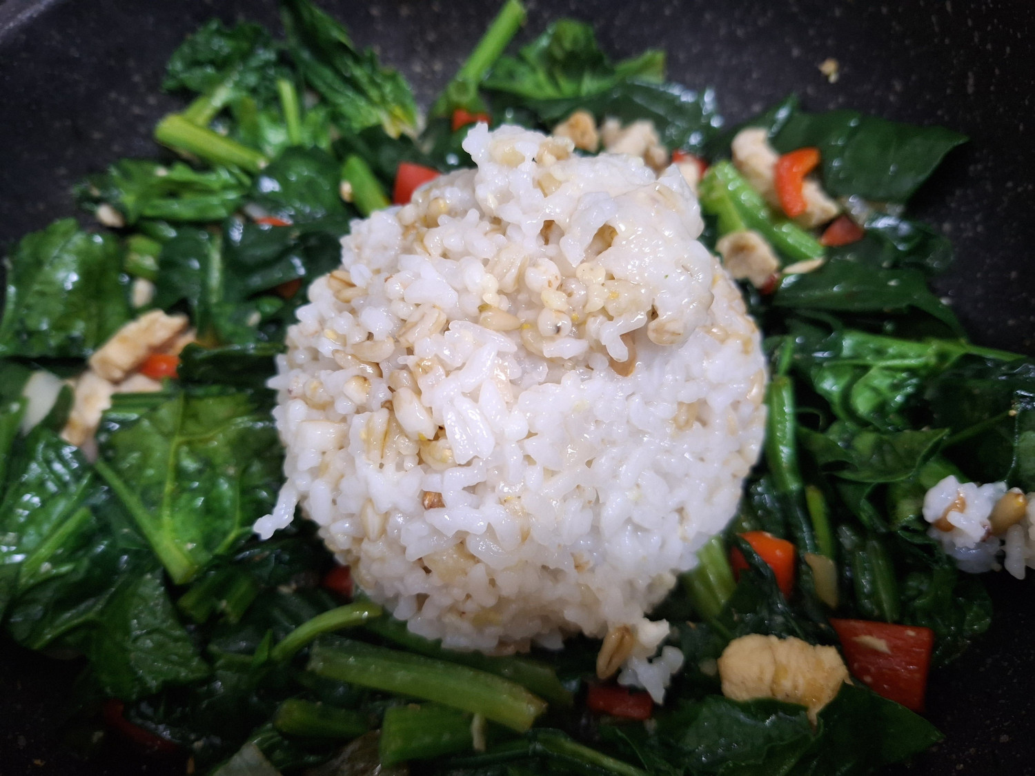 저는 잡곡밥을 썼지만, 없으면 흰밥이나 다른 밥으로