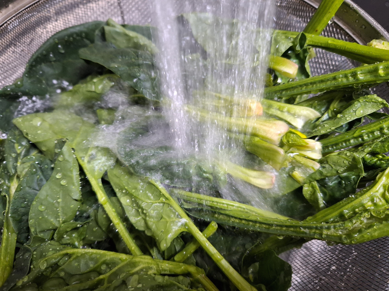시금치는 뿌리를 제거하고 깨끗하게 씻어줍니다.