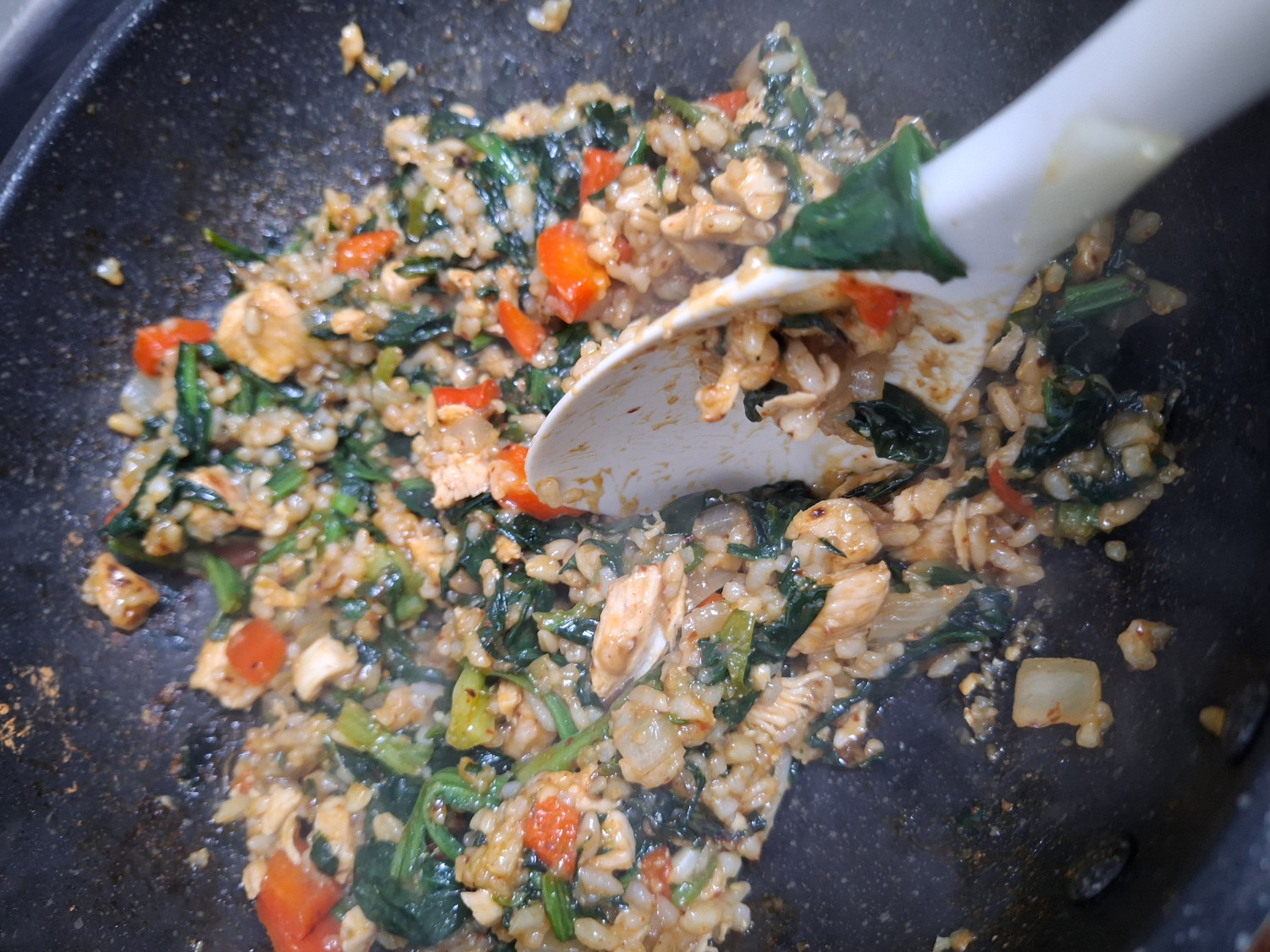 [매운요리] 고단백 매콤닭가슴살시금치볶음밥 만들기