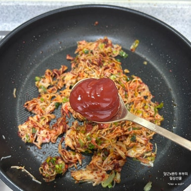 케첩이 들어가 새콤달콤하고 살짝 매콤한 맛이 가미되어 더욱 맛있게 만들 수 있답니다.