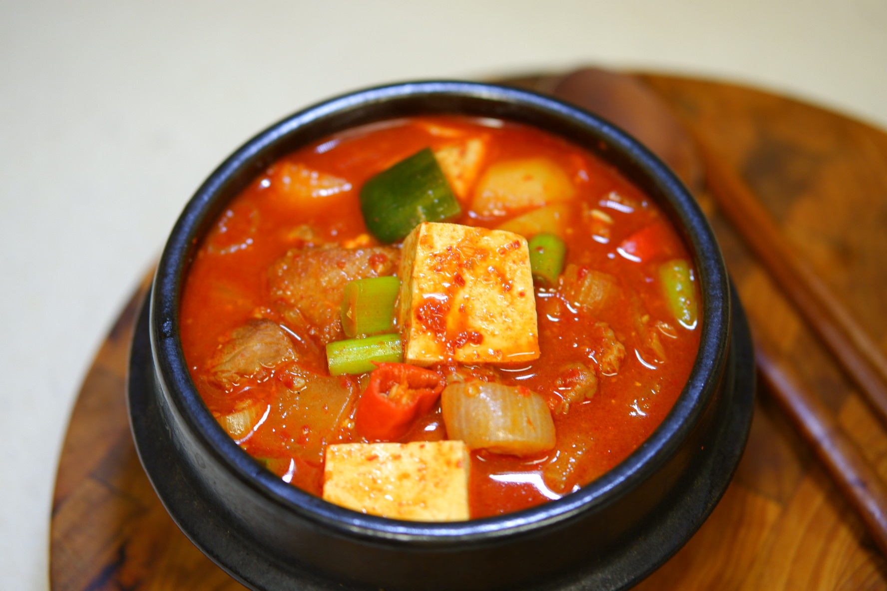 부드러운 목살과 두부의 담백함, 달큰한 애호박이 매콤칼칼한 고추장 양념과 어우러져 밥반찬,술안주로 좋은 고추장찌개!!