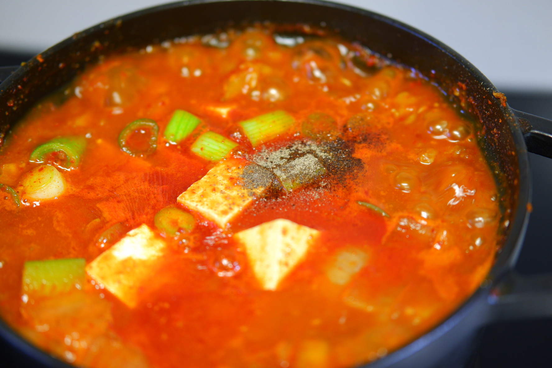 두부와 대파 넣고 한 번 더 끓여 주시다가 마지막에 후추 취향껏 넣어 주시면 완성!!