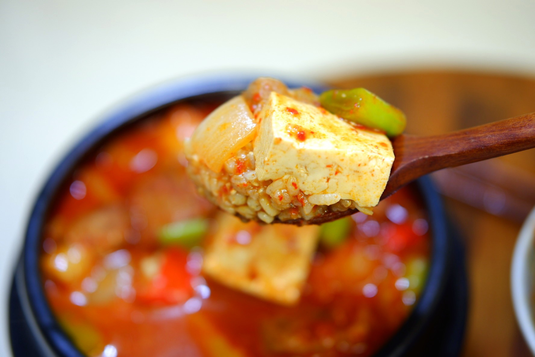 갓 지은 밥 위에 고추장찌개의 듬뿍 올려 쓱쓱 비벼 먹으면 밥 한 공기는 순삭 하게 되실 거예요.