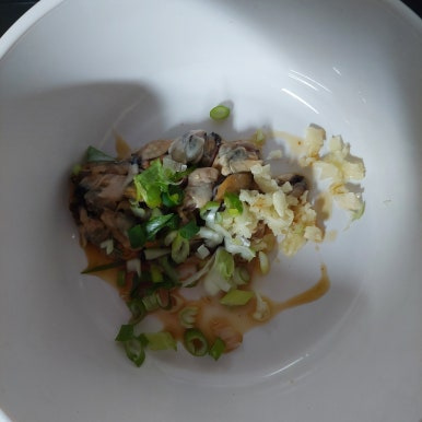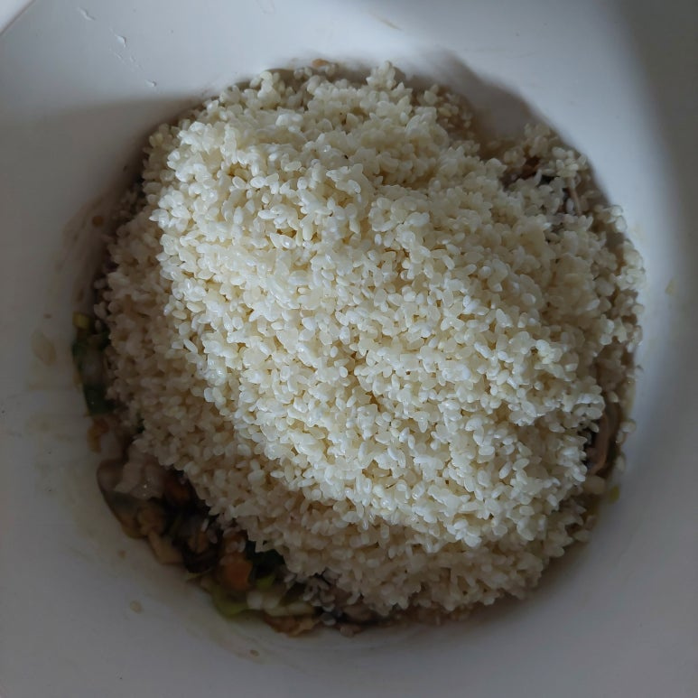 참기름 1큰술, 홍합살 1컵, 다진 마늘 1작은술, 다진 파 1큰술