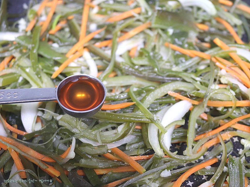 식용유1, 통깨 1, 참기름 한 두 방울