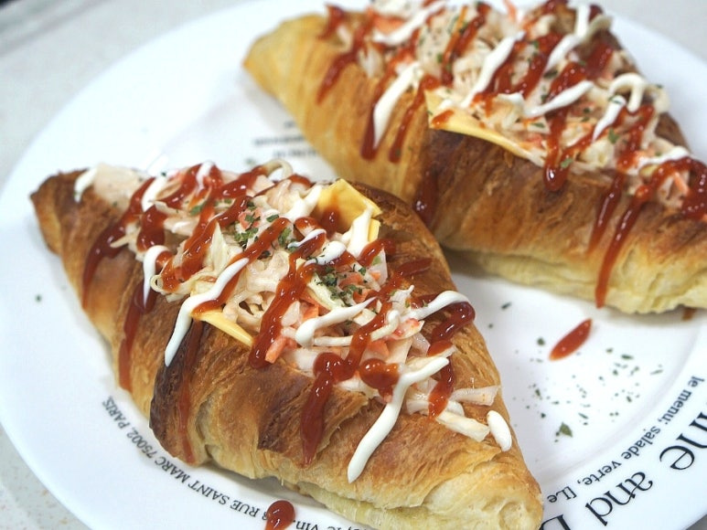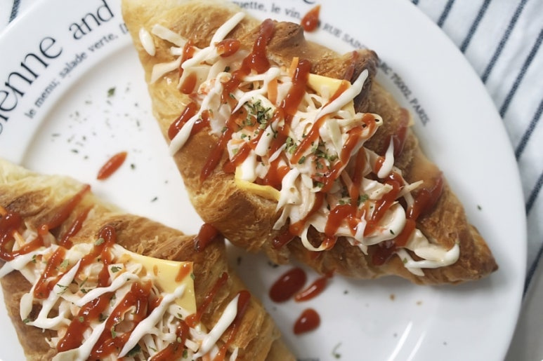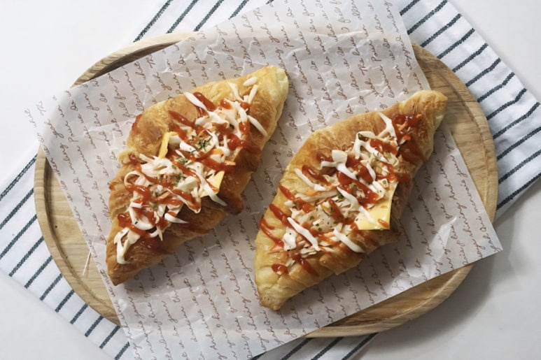 양배추 사라다빵은 어릴 적 흔히 접하던 추억의 맛이죠. 오늘은 크로와상을 활용해 추억의 맛을 소환해 봤어요. 오늘 사용한 크로와상은 단단한 빵이 아니라 결이 가볍고 부드러워서 속 재료와의 조화가 아주 좋아요. 한 입 베어 물면 고소한 크로와상의 결 사이로 양배추 사라다의 신선함이 함께 어우러져서 포만감은 가볍게, 맛의 만족도는 높게 만들어주는 그런 조합이에요. 오늘은 복잡한 과정이나 기술이 필요하지 않으면서도 완성도는 아주 높은 메뉴, 크로와상 사라다빵 소개해 드릴게요 '◡'