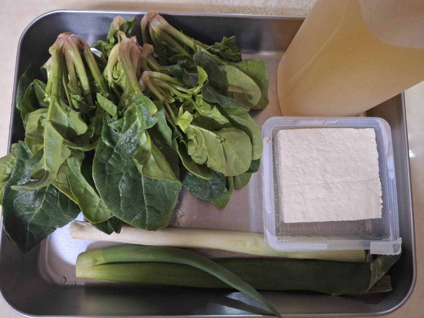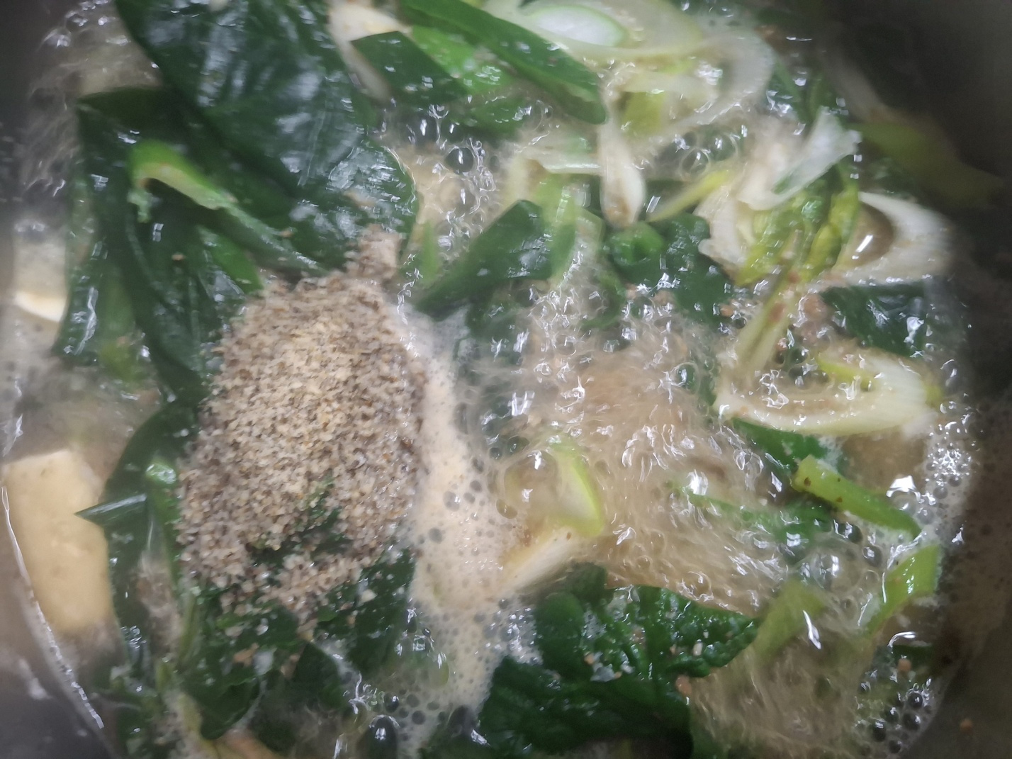 시금치 200g, 두부 300g, 대파 1대, 육수 6컵