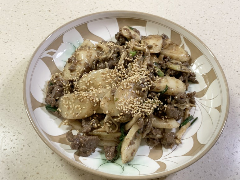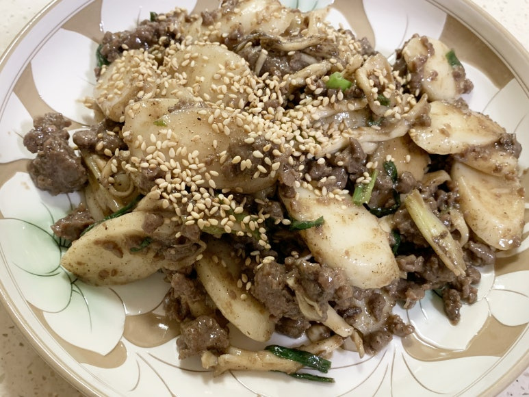 떡볶이처럼 썰어서 소고기를 넣고 만드는 것입니다.