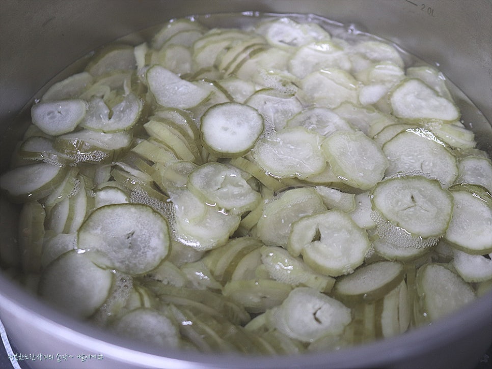 끓는 물에 오이지 넣고