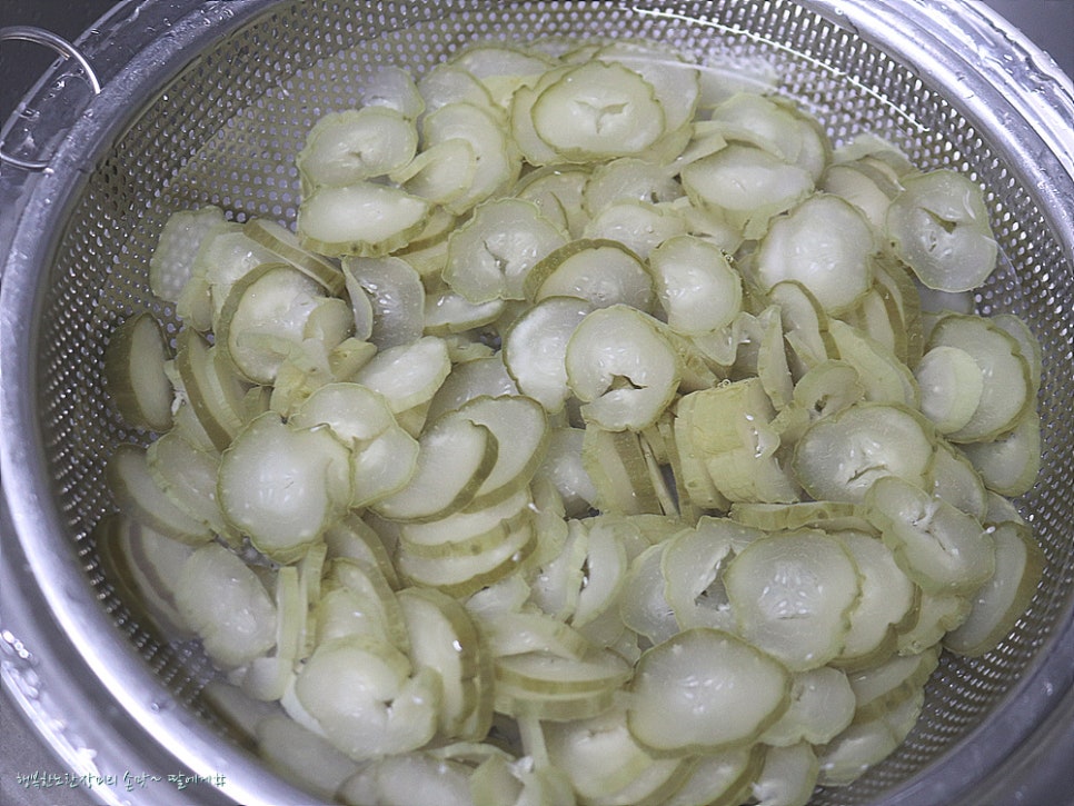 오늘은 끓는 물에 오이지를 데쳐 봤는데
