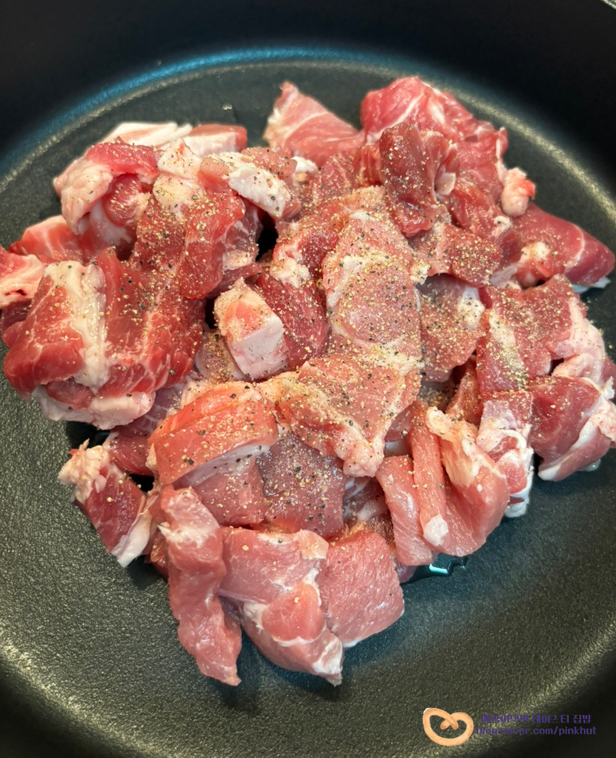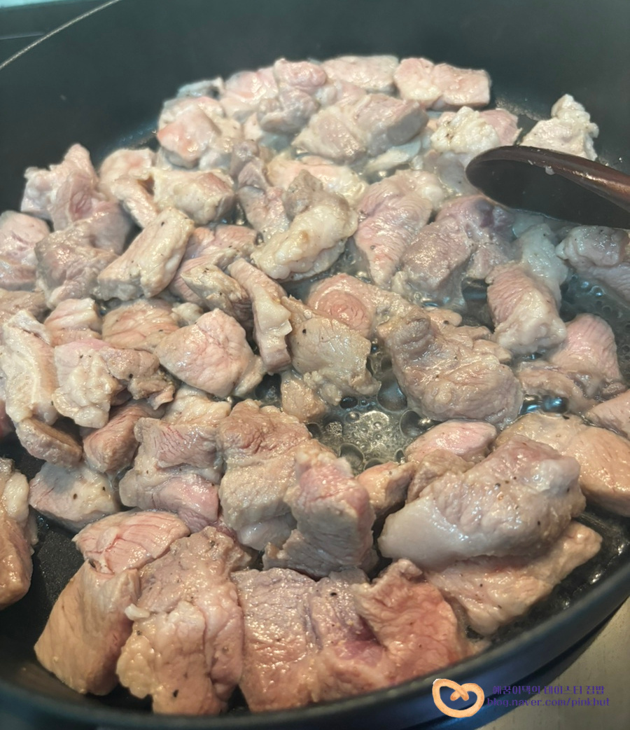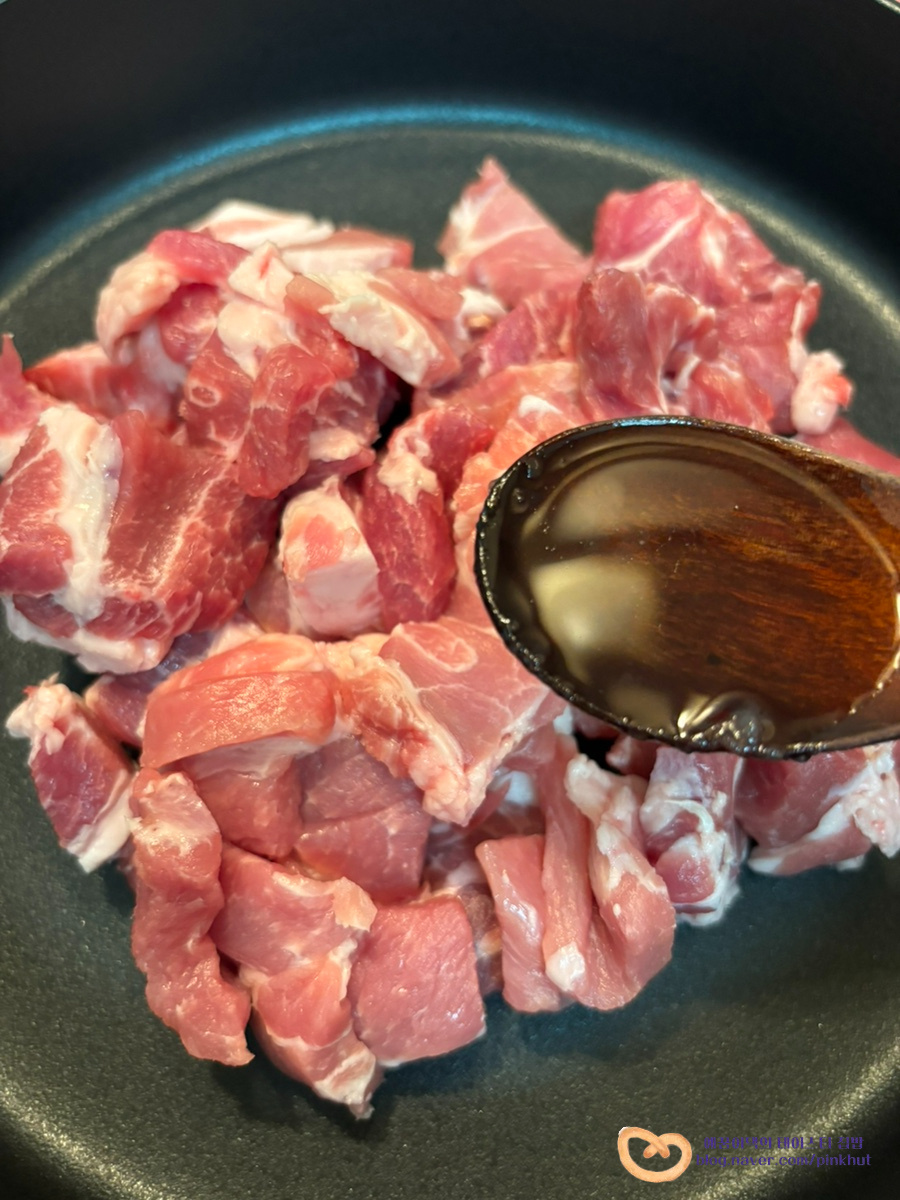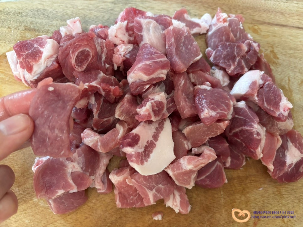 삼겹살, 목살, 앞다리살 모두 좋아요. 저는 기름기가 적은 목살로 만들어 봤답니다