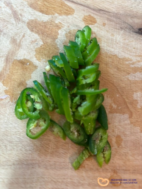 저는 아이들이랑 먹으려고 맵지 않은 풋고추 1개 송송 썰어주었어요