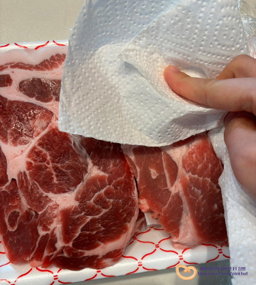 키친타올로 꾹꾹 눌러서 핏물과 수분을 제거해 주세요