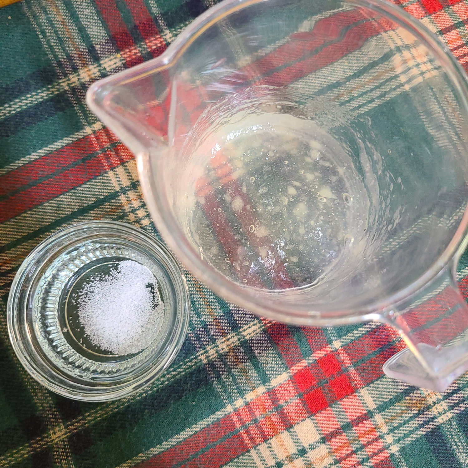 그런 다음 차가운 무염채소육수 20ml에 연하퍼펙트 푸디 1포를 넣고 잘 섞어주고 소금 한 꼬집을 준비합니다