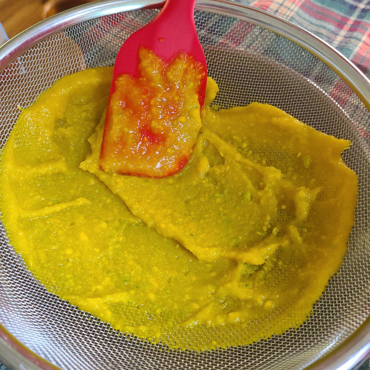 그 다음 체에 한 번 걸러서 질감을 정리시켜줍니다 그럼 섬유질이 부드럽게 제거되어 거의 씹지않아도 부드러워요