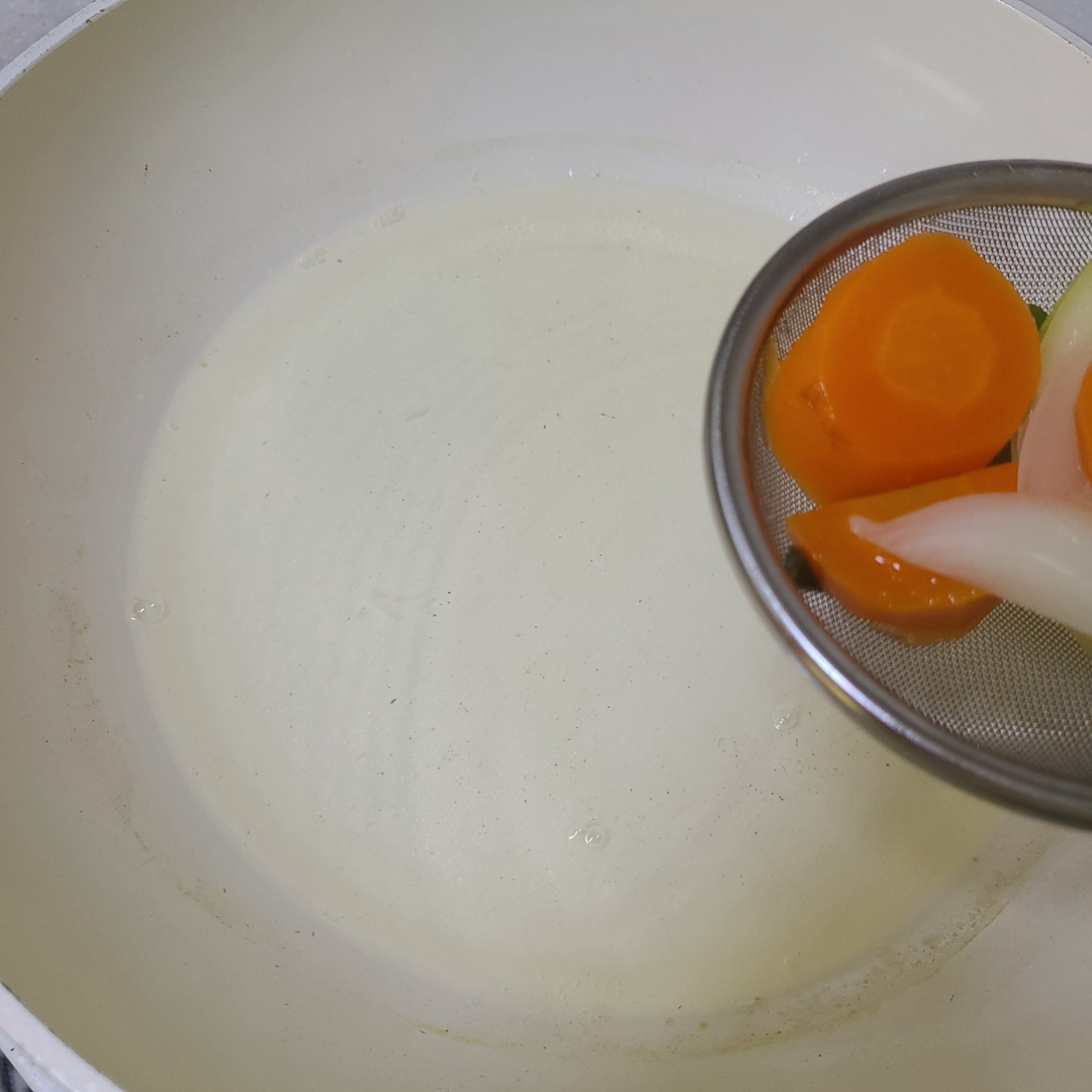 15분이 지나면 육수의 야채는 거르고 맑은 육수만 사용해줄께요