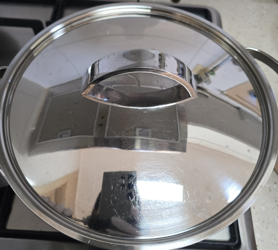 뚜껑 닫고 딱 10분만 기다리면? 기름기는 아래로 쫙~ 빠지고 배추는 고기 향을 머금어서 보들보들해져요.