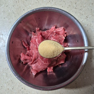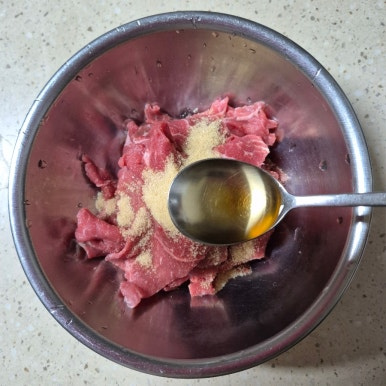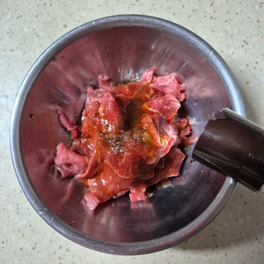 소고기(불고기용)300g, 설탕 1큰술, 맛술 1큰술, 간장 2큰술, 참기름 1작은술, 후춧가루 약간, 통깨 1작은술, 다진 마늘 1작은술