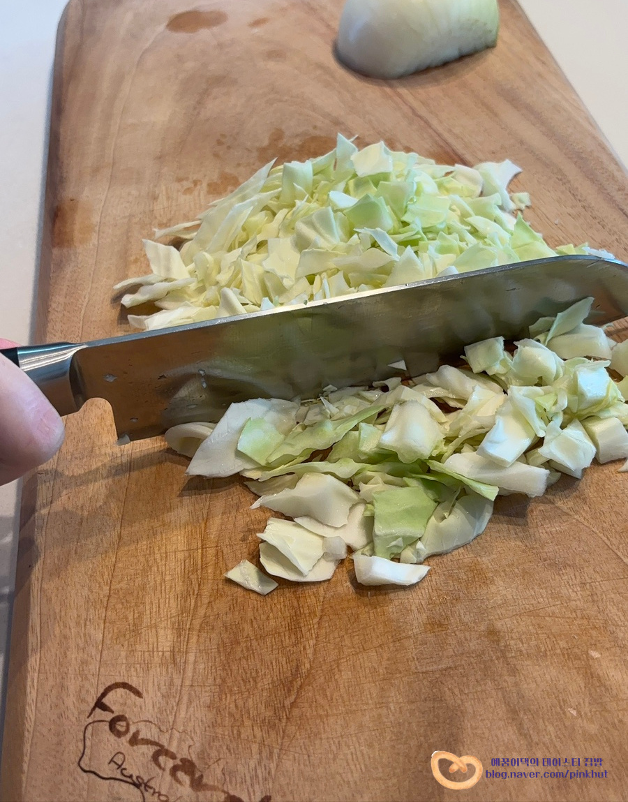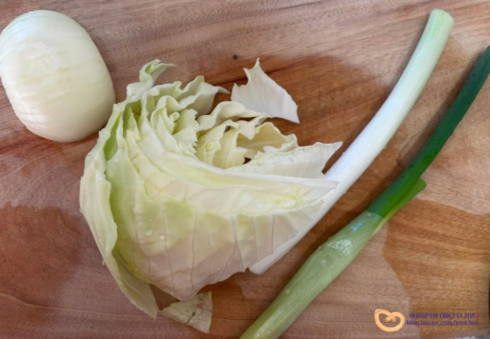 대파는 종종 썰어주고요 양배추와 양파는 아이들 먹기 좋은 사이즈로 잘라주었어요