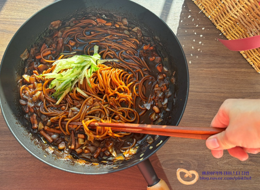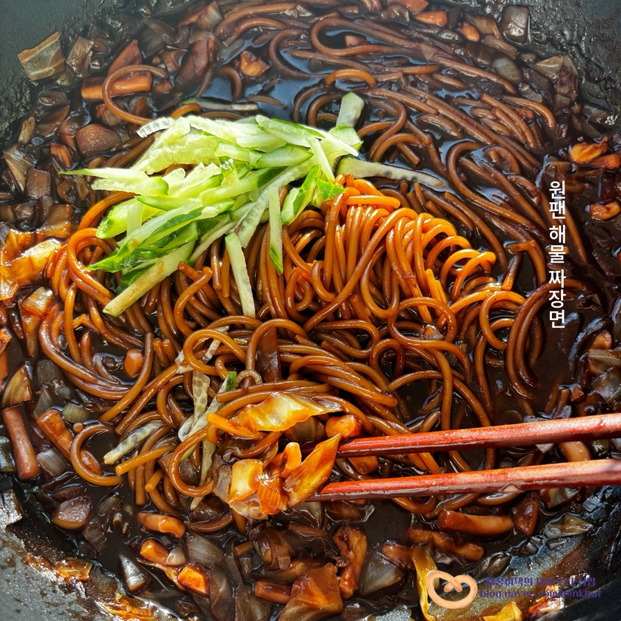 그래서 오늘은 뚜아자매가 아주 맛있게 잘 먹었던 메뉴 원팬 해물 짜장면 만드는법을 소개하려고 해요.