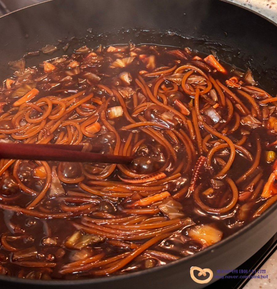 원팬 해물 짜장면 만드는법, 인기 최고 아이 겨울 방학메뉴! 집에서 짜장파스타 만들기