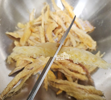 손질한 황태채는 약 4~5cm 길이로 먹기 좋게 잘라주세요.