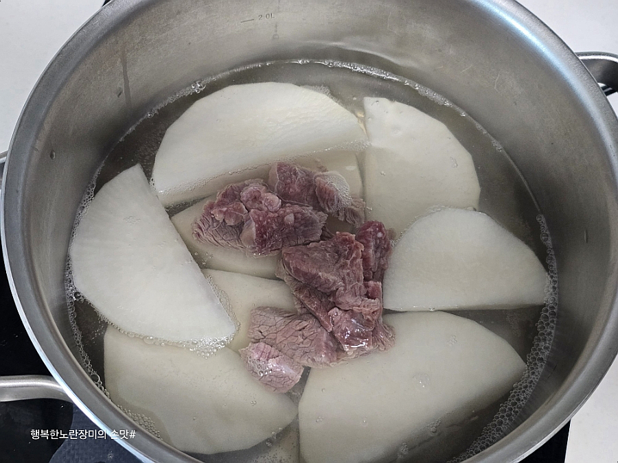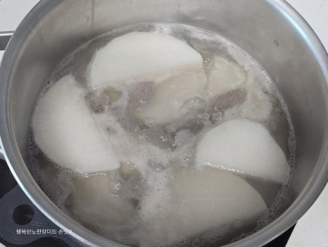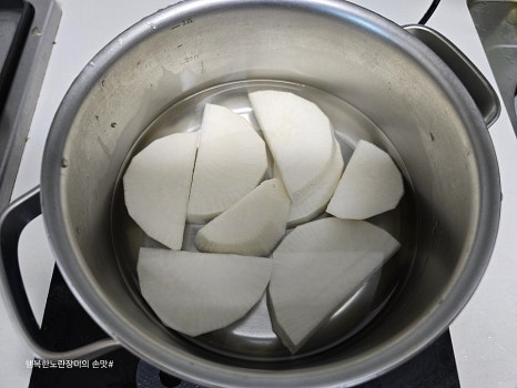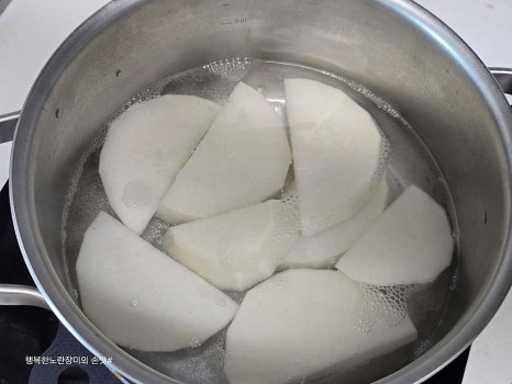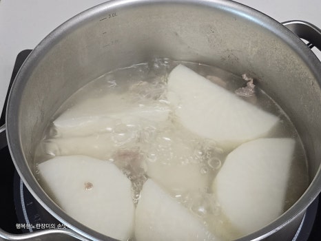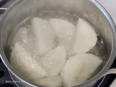 물은 무가 잠길 정도로 붓고 먼저 끓여요~