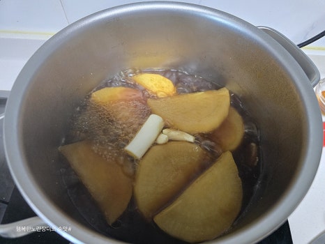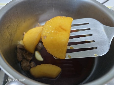 오래 약한 불에서 익혀요~