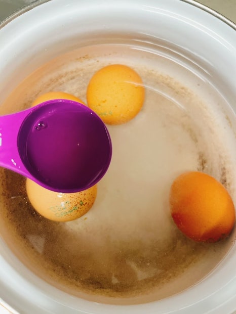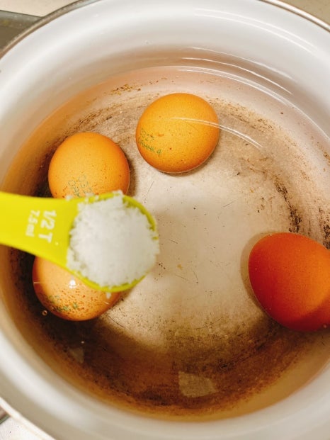 계란은 소금0.5큰술 , 식초1큰술 넣고