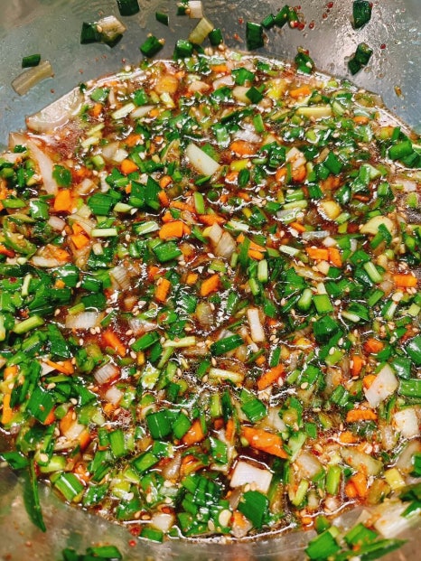 담아서 섞어주시면 부추짜박이 양념장 완성입니다